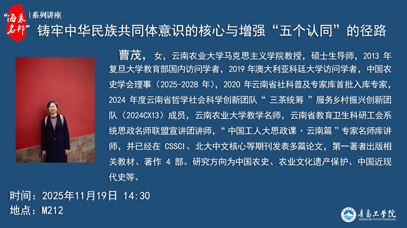“海表名邦”系列讲座:曹茂《铸牢中华民族共同体意识的核心...