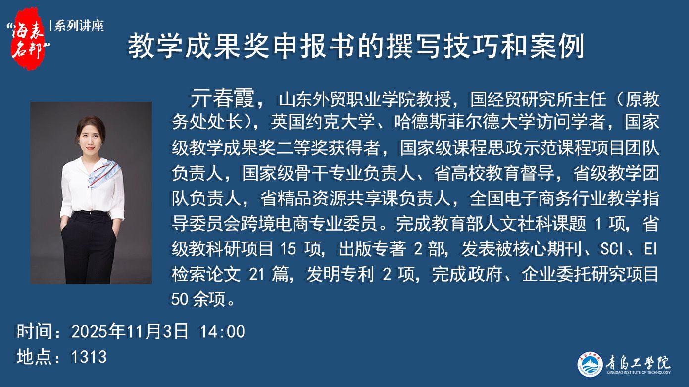 “海表名邦”系列讲座:亓春霞《教学成果奖申报书的撰写技巧...