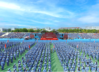 9月21日,青岛工学院2025级新生军训结营仪式暨开学典礼在田径运动场举行。胶州市消防救援大队副大队长樊炳辰,学校党委书记周有波,校长刘连新,学校领导班子成员出席,军训教官、相关部门负责人、各二级学院院长、2025级学生辅导员以及全体新生参加仪式,仪式由副校长李占军主持。