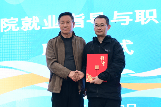 开幕式仪式环节,李伟代表学校为曾劲颁发“就业指导与职业规划导师”聘书,为大赛引入专业指导力量。