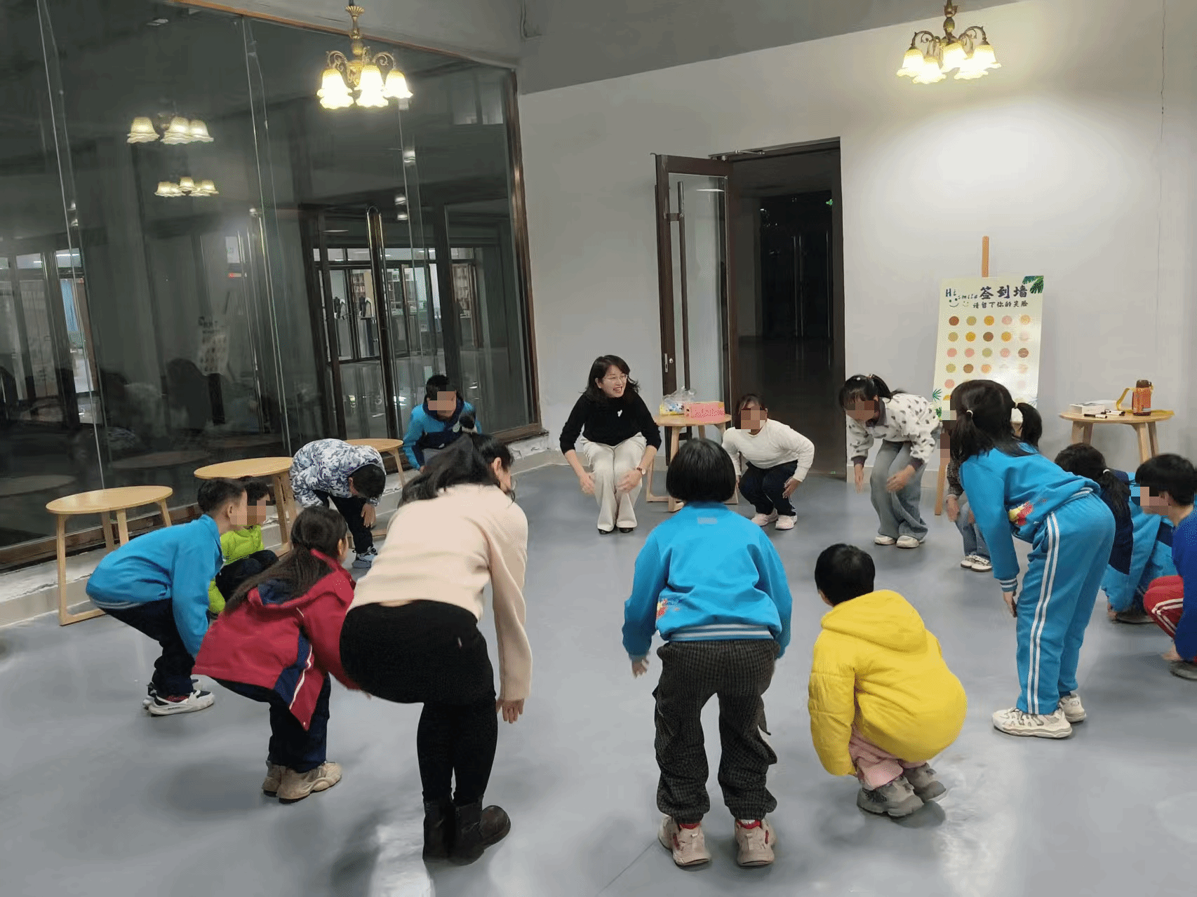 活动现场暖意融融,覆盖三四岁学龄前幼儿至六年级小学生,在两位英语专业老师的带领下尽情沉浸在外语的欢乐世界里。欢快的英语歌谣律动环节,孩子们跟着旋律拍手、舞动身体,边听边唱、边玩边学,动感的节奏和趣味的互动彻底打破了英语学习的枯燥感,轻松感受英语韵律之美。在绘本阅读环节,老师们紧扣与视频契合的主题,用生动的讲解、形象的动作带领孩子们品读绘本,同步增设创意涂鸦涂色实践环节,让抽象的语言知识变成看得见、摸得着、能动手的趣味体验,实现有温度、有意义的语言输入。