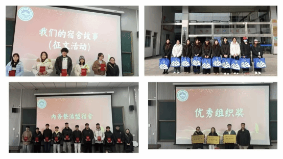 经二级学院推荐、评审小组严格审核,各类奖项正式揭晓:杨畅等13名同学获“我们的宿舍故事”征文大赛奖项;9宿509等6间宿舍获评“宿舍生活放映间”优秀作品:邬琳桐等18名同学在“专属室友萌像设计坊”脱颖而出;9宿 620等6间宿舍的手作作品斩获“创意宿舍手作间”表彰;1B207等100间宿舍以规范内务、和谐氛围获评“内务整洁型宿舍”;商务外语学院、经济管理学院、通识教育学院因组织得力、参与度高,荣获“优秀组织奖”。