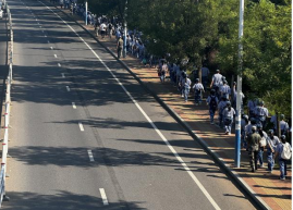 各位领导不时与同学们交流,关心大家的身体状况,鼓励同学们发扬不怕苦、不怕累的精神。同学们身着统一迷彩,队伍整齐划一,口号响亮激昂。尽管路途较长,但大家始终保持高昂的士气和严格的纪律,一路歌声嘹亮,一路互相鼓励,充分展现了马院学子蓬勃向上的精神风貌和团结协作的集体凝聚力。行军队伍成为沿途一道亮丽的风景线。