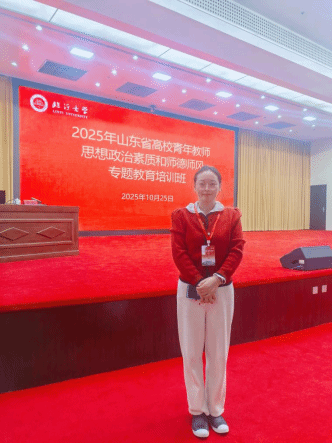 为进一步提升高校青年教师思想政治素质与师德师风建设水平,2025年10月22日至26日,山东省教育厅组织的高校青年教师思想政治素质和师德师风专题教育培训在临沂大学顺利举办。青岛工学院马克思主义学院姜文文老师作为高校青年骨干教师代表参训,并在总结汇报阶段作为小组代表发言。