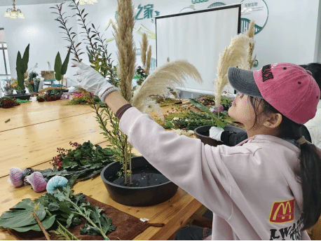 活动尾声,参与活动的教师表示:“中式盆花不仅是技艺的传承,更是对‘天人合一’美学观的实践。本次沙龙选择秋季主题,既是应时应景,也希望师生通过草木感知季节流转,将传统意境融入当代设计语言。” 从观察花材特性到构思空间布局,从修剪枝叶到完成创作,这场持续三小时的沙龙,不仅让参与者掌握了盆花造型技巧,更在一草一木的对话中,触摸到了中式美学的温度。