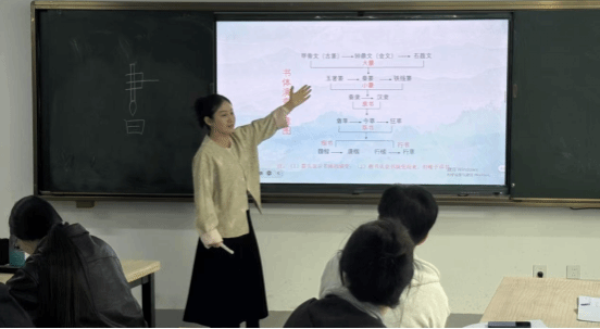 课程进入“书体演变与汉字文化”环节时,以“文字游戏”为切入点,她首先抛出问题:“大家知道‘中国’一词最早出自哪里吗?”随后展示了西周青铜器《何尊》的铭文图片——这一记载“宅兹中国”字样的文物,正是“中国”一词目前已知的最早出处。通过“趣味文字游戏+专业知识讲解”的融合教学模式,不仅能激发学生学习兴趣,更能让中华优秀传统文化在课堂中真正“活”起来。