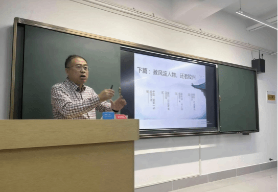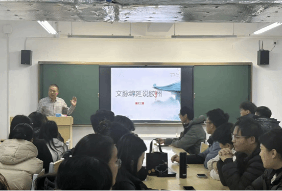 为厚植学生文化自信,推动地方文化与通识教育深度融合,12月3日下午,王清臣应邀走进青岛工学院,为青岛工学院学生带来“文脉绵延说胶州”专题讲座。讲座从胶州悠久历史、文化遗产、先贤事迹三个维度,为现场师生呈现了一场兼具思想深度与人文温度的文化盛宴。