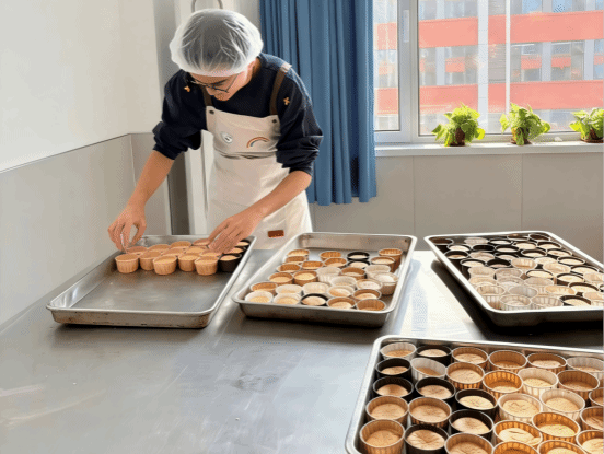 活动现场,参赛学生们以小组为单位,紧扣“健康烘焙”主题展开创作。从原料的精准称量到配方的科学调配,再到烘焙温度的精细控制及成品的创意装饰,每一个环节都彰显出扎实的专业功底,充分体现了专业理论向实践技能的完美转化。