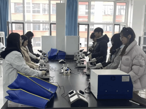 图2 宗琳老师在指导学生进行显微镜规范操作