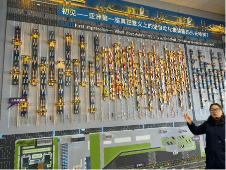 在参观与学习过程中,同学们还重点关注了智慧港口在绿色低碳发展和安全生产方面的技术实践。通过工作人员的讲解,大家对智能监控系统、能耗管理平台以及风险预警机制有了更加直观的认识,进一步体会到人工智能技术在提升生产效率、保障作业安全和推动可持续发展中的重要作用。