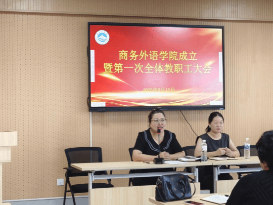 9月15日,青岛工学院商务外语学院成立暨第一次全体教职工大会在一教1313会议室隆重召开。全体教职工齐聚一堂,共同见证这一重要时刻。
