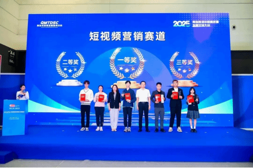 本次大赛高校短视频营销赛道吸引了来自全市多所高校的优秀团队同台竞技。由张琳老师指导的英语专业团队(队长:张鸣羽,队员:张舒阳、陈苗苗)凭借出色的创意策划、精湛的视频制作与流畅的外语表达,荣获一等奖;由宋佩雨老师指导的应用英语专业团队(队长:宋雅轩,队员:翟俊杰)同样表现优异,斩获二等奖;张琳老师和宋佩雨老师获得优秀指导老师奖。