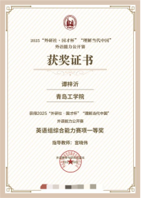 除特等奖外,我院学子在此次赛事中还展现出“多点开花、全面出彩”的良好态势:学子谭梓沂凭借出色的表现荣获一等奖,唐雅如同学则成功斩获二等奖。这份亮眼的成绩单,既是参赛学子们平日勤学苦练、不断打磨专业能力的成果,更是学院长期以来重视外语教学质量、深耕人才培养工作的实力彰显,为学校外语学科建设再添浓墨重彩的一笔。