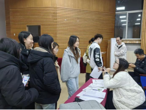 宣讲会接近尾声时,同学们纷纷排队登记,表达自己的求职意向。队伍从报告厅内一直延伸到门口,大家拿着简历,脸上充满了对未来职业发展和口语能力提升的双重期待。