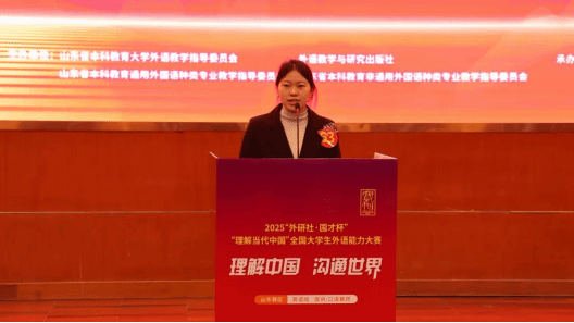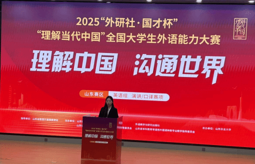 2025年11月1日至2日,“外研社·国才杯”“理解当代中国”全国大学生外语能力大赛(山东赛区)演讲赛项在山东农业大学成功举办。本届赛事汇聚全省高校优秀学子同台竞技,竞争激烈。我院选派的两名学子表现优异,2023级英语专业1班阮娆欣同学和2023级汉语言文学专业2班李彦园同学凭借扎实的语言功底、清晰的逻辑思维与沉稳的现场表现,双双荣获演讲赛项“优胜奖”,充分展现了我院学子出色的外语综合能力与跨文化沟通素养。