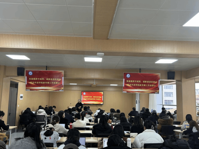 为深入落实本科教育教学审核评估整改要求,统筹推进新学期教学工作高质量开展,3月6日下午2:30,商务外语学院在1313教室召开主题为“复盘提质守成效,谋新奋进促提升”的新学期教学工作部署会。学院于慧丽院长主持会议,全院教师参会。