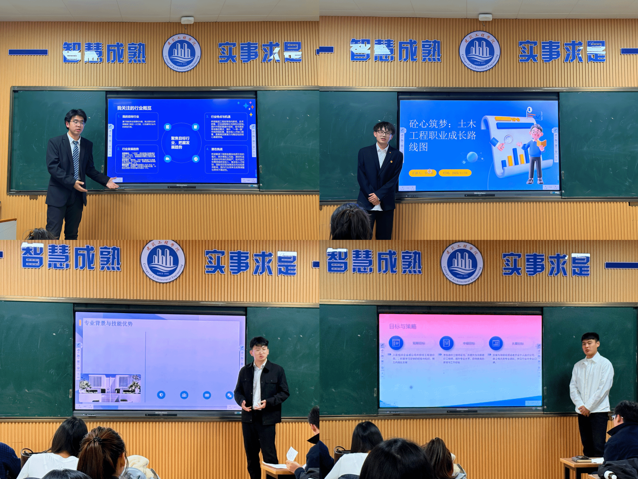 赛场上,选手们从自我认知、职业分析、目标设定、实施计划四个维度,系统阐述了自己的职业蓝图。有的选手以日日精进为信条,制定了深耕专业技能、定期复盘行业案例的自律计划,立志成为建筑领域的笃行实干者;有的选手紧扣绿色建筑趋势,规划了常态化参与行业交流、阶段性沉淀实践成果的成长路径,展现了新时代学子的前瞻视野与责任担当;更有学子将个人理想融入国家发展,锚定乡村振兴战略,设计了深入基层调研、落地实践项目的行动方案,用青春诠释了当代青年的社会责任感。