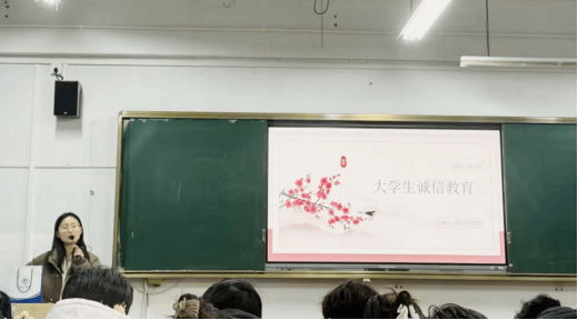 班会以剖析典型案例为切入点,深入阐述了诚信在个人修养、学风建设及社会公德构建中的重要意义。围绕即将到来的考试周,各年级辅导员重点强调了严守考纪、诚信应考的重要性,并组织全体学生签署《诚信考试承诺书》,将纪律要求内化为行为自觉,以端正态度迎接学业检验。为持续强化考风建设,学院集中组织学生观看了学校2025-2026学年第一学期期末考试考前动员会,激励学生以真实学识展现学习成果,共同维护公平、公正的考试秩序。