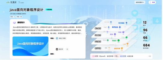 资源层面,智慧课程在梳理教材、PPT等传统载体的基础上,同步挂载含118个视频的684个数字化资源;更以“代码实践+规范理解”为核心,构建三层基础资源体系—结构化代码库,含各模块可运行示例及官方API手册;语法可视化工具动态拆解内存模型、线程状态转换等抽象逻辑;行业案例覆盖日常生活、金融、工业互联网等领域,从需求到实现深化OOP应用。资源层层递进,切实解决“怎么写”“为什么好”“怎么用”问题,为学生筑牢“学-练-用”能力底座。