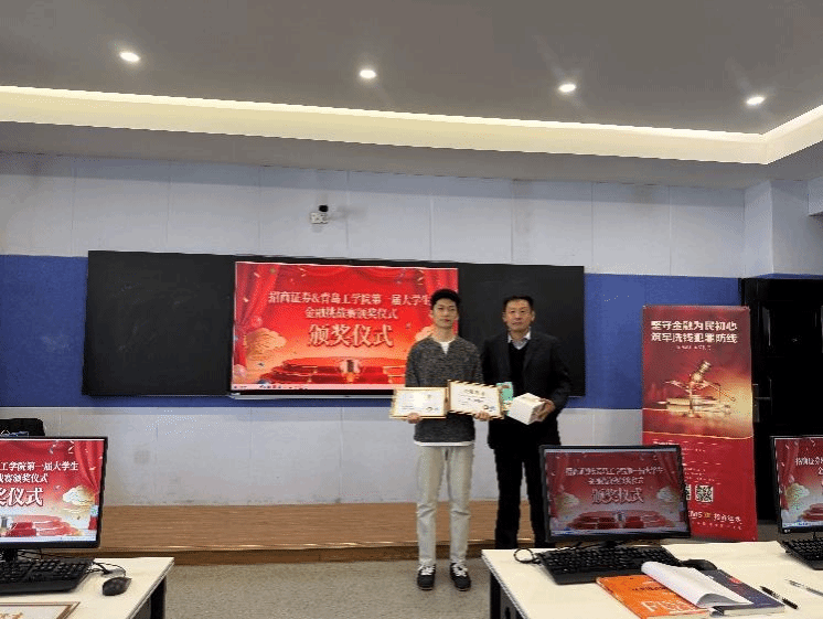 比赛采用“模拟交易+案例分析+现场答辩”的多维赛制,全面考察学生的市场分析、风险控制和投资决策能力。招商证券专业团队为学生提供了全程指导,使课堂所学理论在真实市场环境中得以检验与提升。本次比赛是学院深化“产教融合、校企合作”的重要举措。招商证券胶州营业部区域经理周焕锦为获奖学生颁发了证书与奖品。周焕锦表示,企业高度重视与高校的合作,希望通过此类活动提前发掘和培养符合行业需求的金融人才。双方将以赛事为起点,进一步拓展在实习基地、课程共建、师资共享等领域的合作。获奖学生纷纷表示,通过参赛深化了对金融行业的理解,增强了将理论转化为实践的信心。