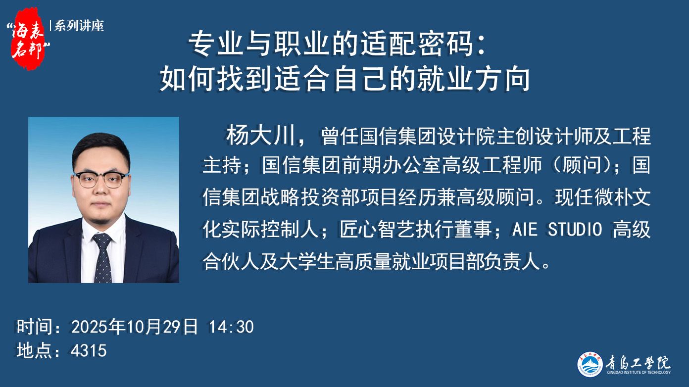 “海表名邦”系列讲座:杨大川《专业与职业的适配密码:...
