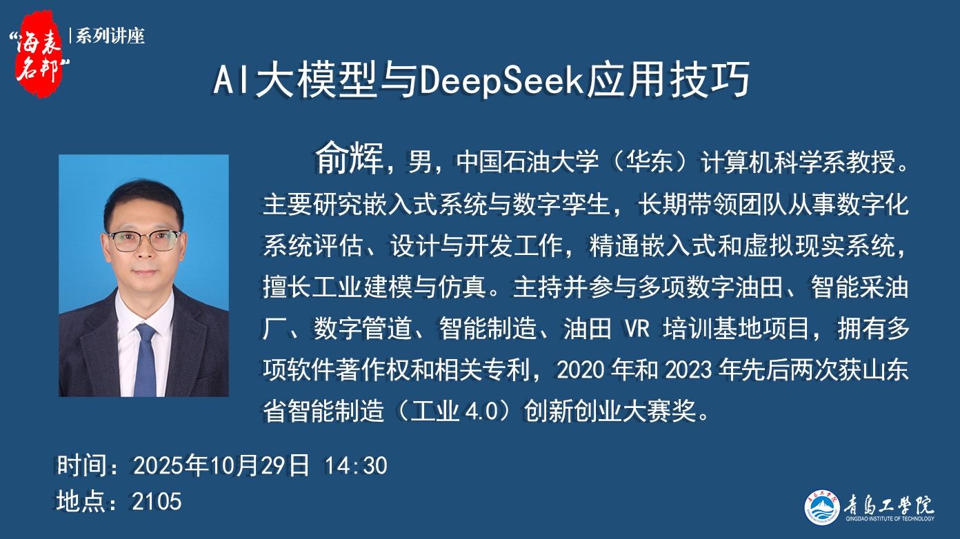 “海表名邦”系列讲座:俞辉《AI大模型与DeepSeek应用技...