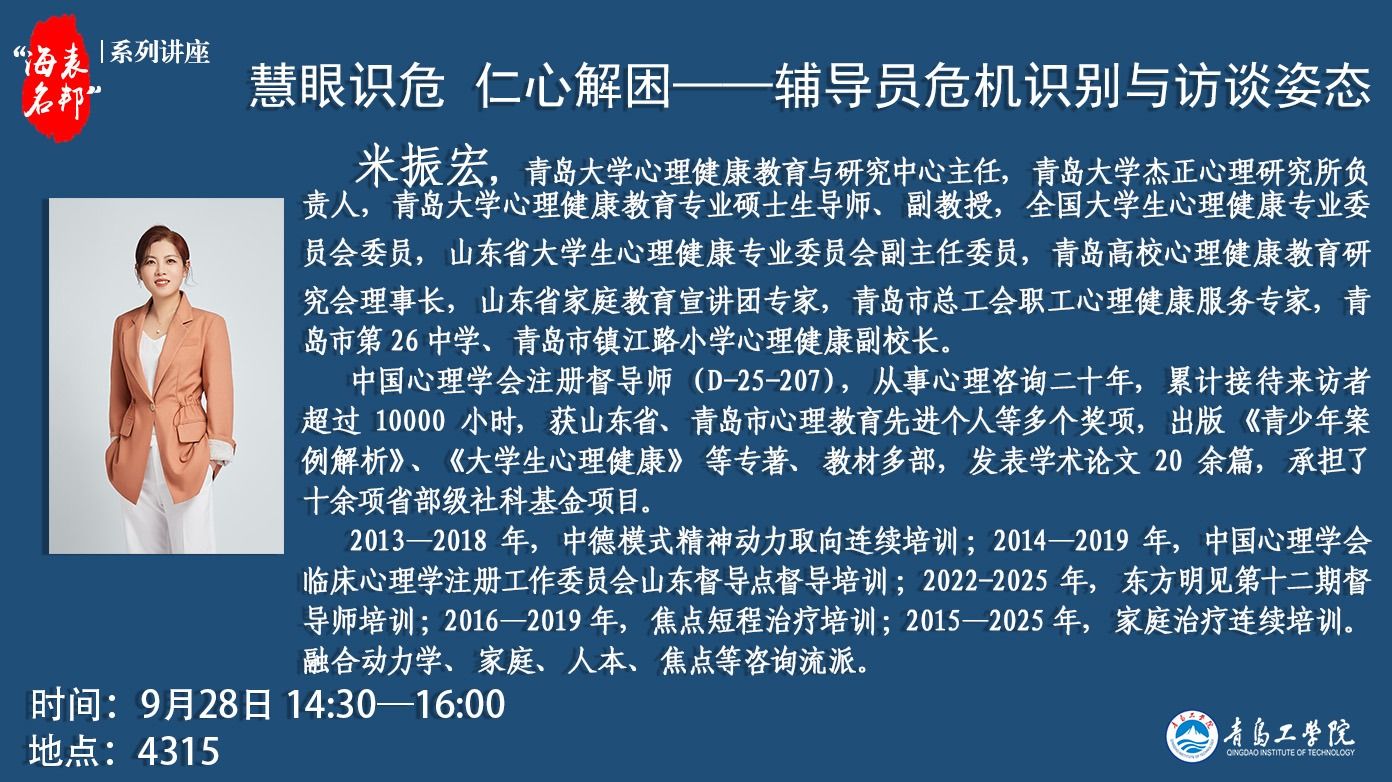 “海表名邦”系列讲座:窦雅琴《青岛工学院大学生全程化...